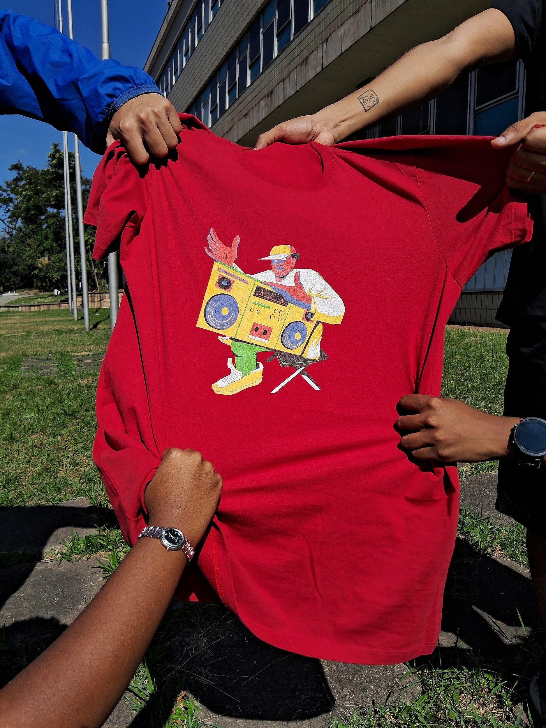 As camisetas que foram estreadas na realização do evento e também serviram de premiação para os artistas vencedores da batalha agora estão à venda com cores e tamanhos variados, além da malha que se destaca por ser muito confortável, de composição 100% algodão.